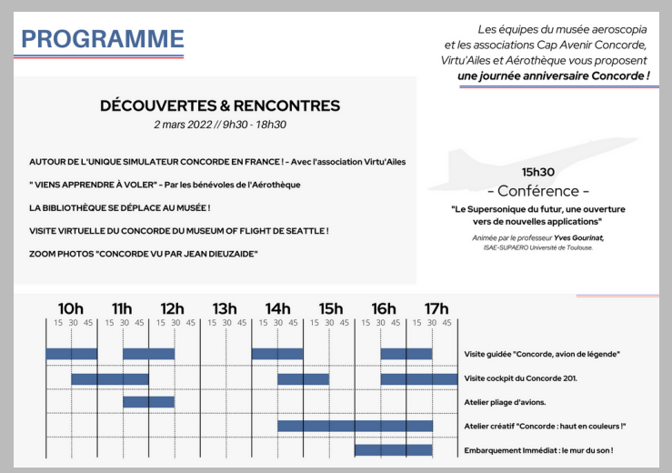 Enfin, Yves Gourinat de l’ISAE sera parmi nous pour une conférence sur le futur du supersonique pour répondre à notre mission d’établissement de partage de la culture scientifique aéronautique passée, présente et surtout future.